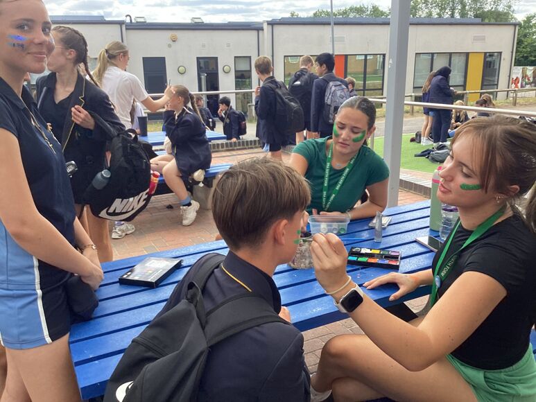 Our Sixth Form students managed a face painting stall, enabling attendees to adorn themselves with stripes in their House colours.